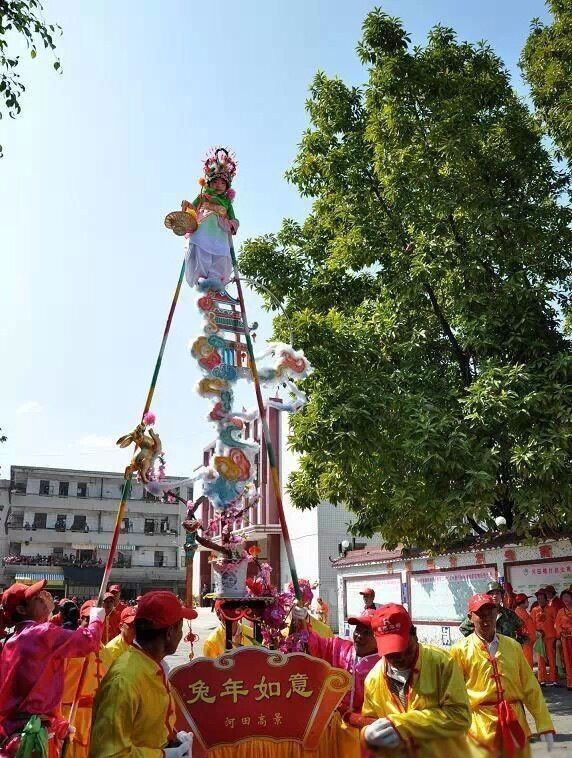 河田高景起源于廣福庵廟會,具有濃厚的佛道宗教色彩。“河田高景”時間設定在每年正月十九、二十兩天,是一種具有固定時間、路線和基本儀式的、約定俗成的地方性傳統民俗。